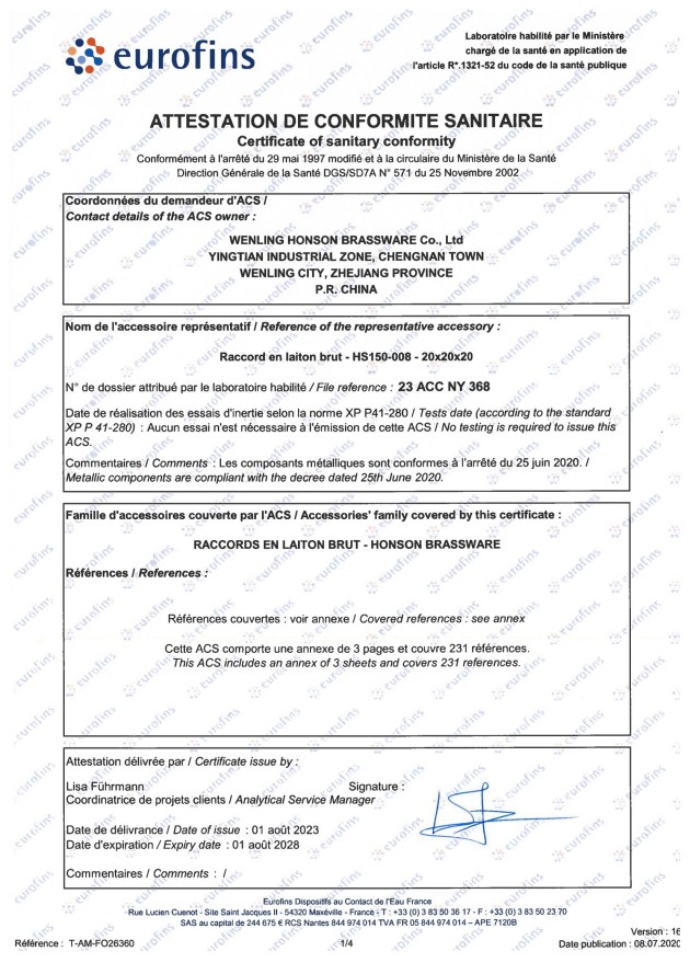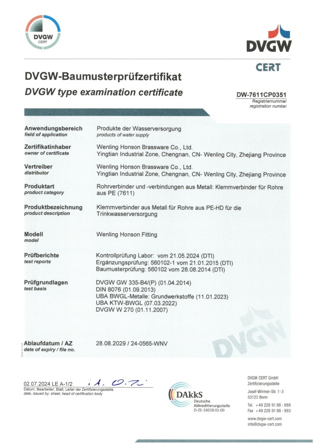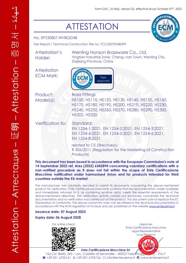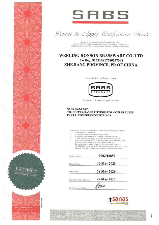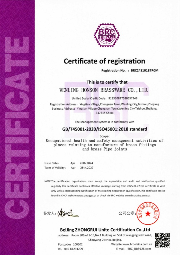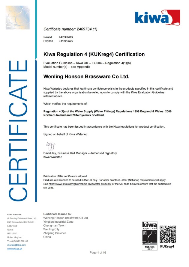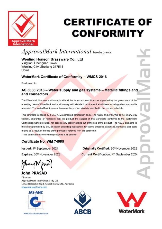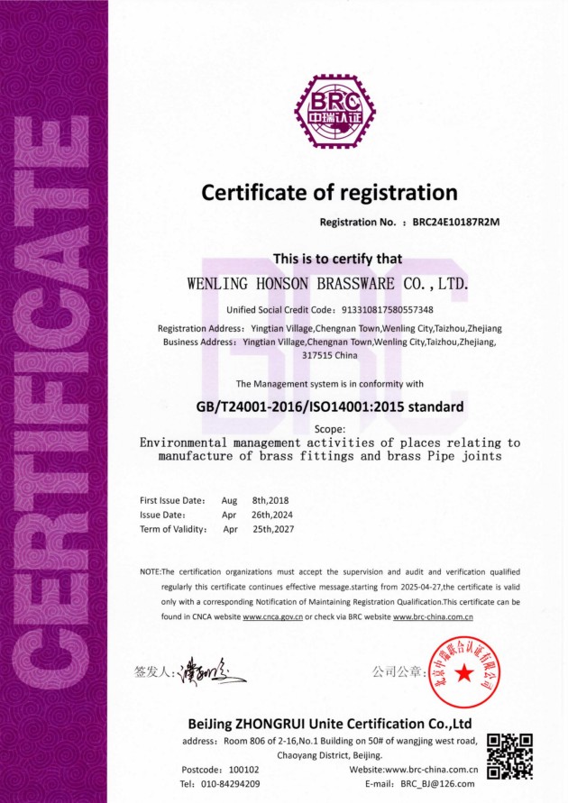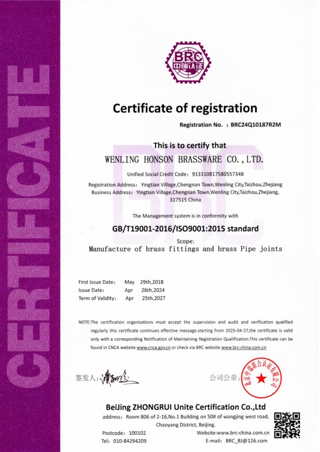 We have passed the ISO9001:2015 and ISO14001:2015 certification and BSCI audit. Our products have been certified to CE, DVGW, KIWA, WRAS, SABS, ACS, AENOR and WATERMARK.